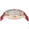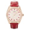 ストラップはグロッシーレッドのレザー製で、装着感にもこだわっています。内部にはスイス時計製造の最高水準の精度と性能、耐磁性を備えたマスター クロノメーター キャリバー8807を搭載しており、信頼性と美しさを兼ね備えた一本です。