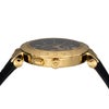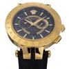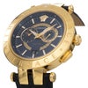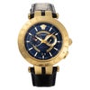 「V-RACE(VEBV00219)」は、ヴェルサーチェのスポーティで力強いデザイン哲学を体現したクロノグラフウォッチです。直径46mmの存在感あるステンレススチールケースに、深みのあるブルーダイヤルと同色のレザーストラップを組み合わせ、ダイナミックで洗練された印象を演出。ダイヤルにはブランドを象徴するグレカパターンが施され、12時位置にはアイコニックなメデューサロゴが配されることで、ひと目でヴェルサーチェとわかる個性を放ちます。