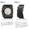 ケースには、傷や摩耗に強いブラックDLCコーティングが施されています。これは、ダイヤモンドのような硬度を持つ炭素薄膜で、時計にシャープでモダンな外観をもたらします。